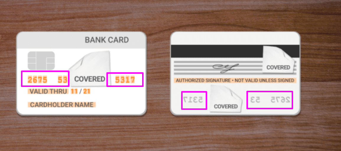 - you covered all the card numbers properly (the photo must show the first six and the last four digits of your card number; the CVV code on the reverse must be covered)